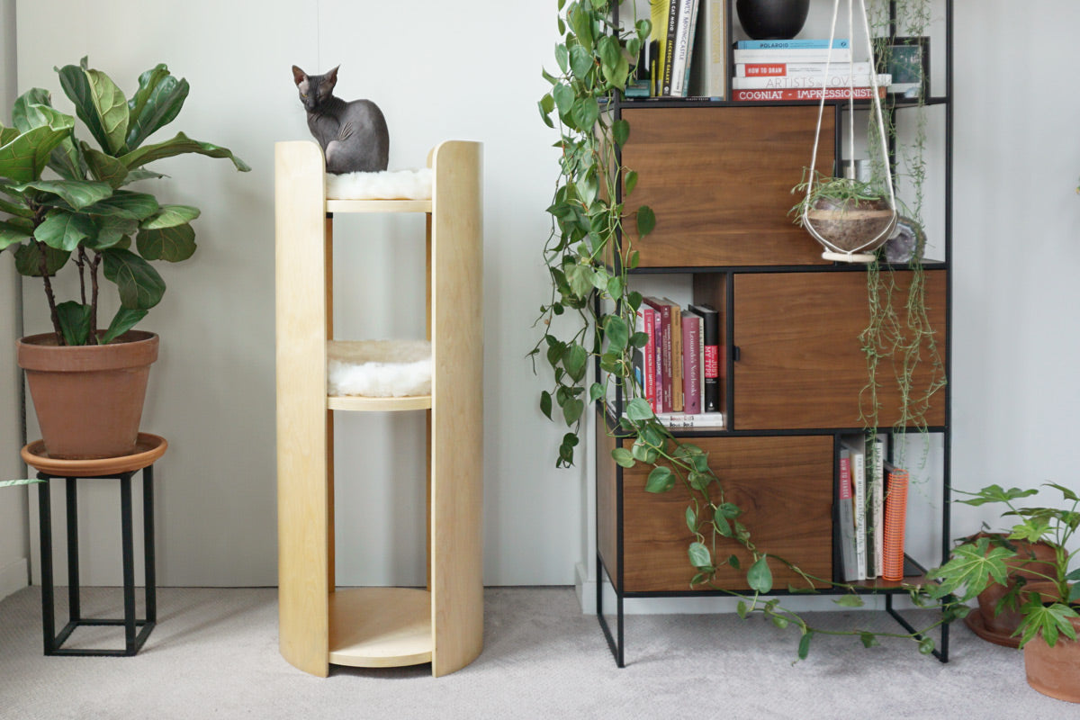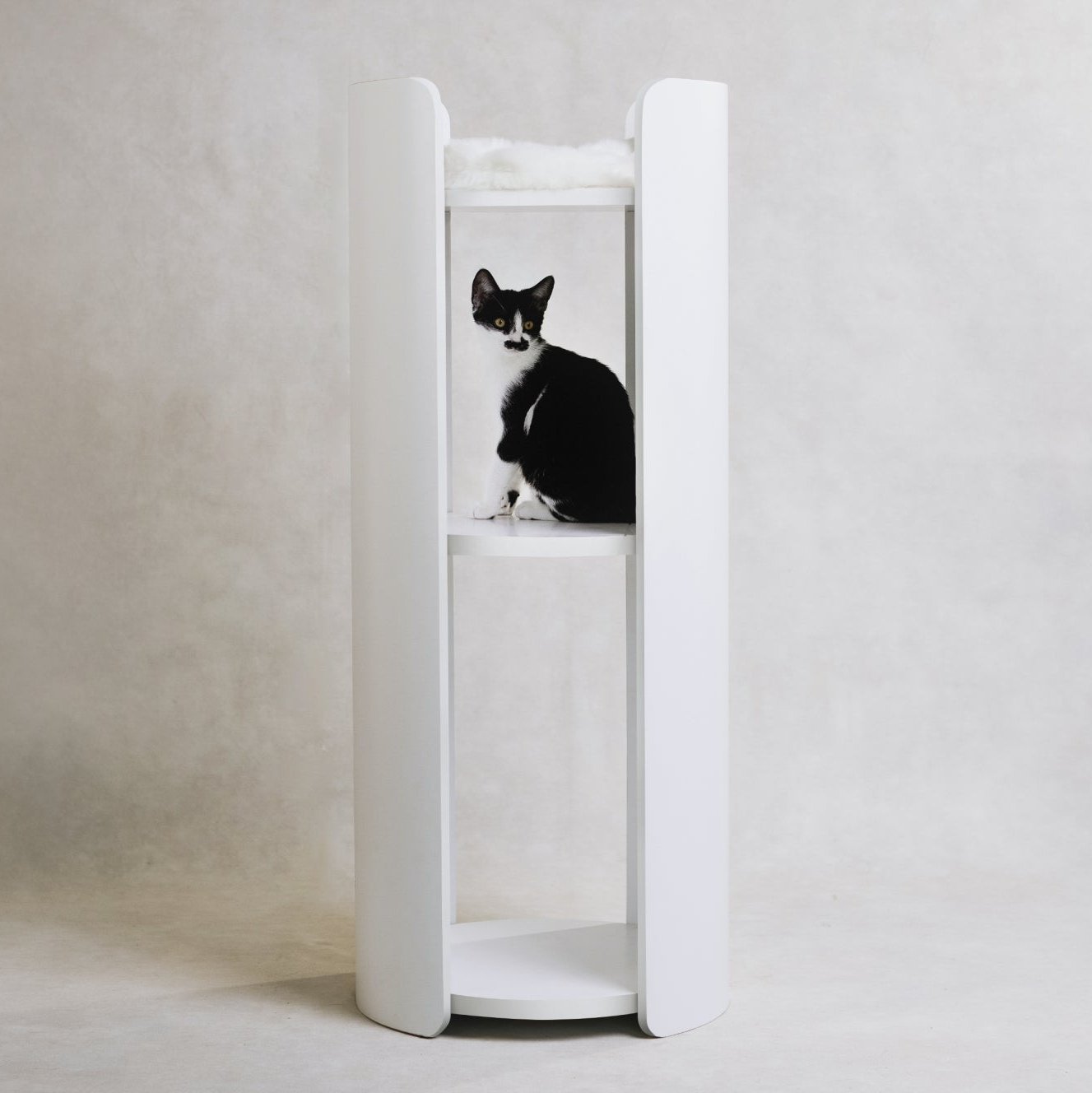 The sleekly designed Castillo cat tower is the supreme cat napping lounge to pair with your modern furniture. With a circular-shaped resting area encompassed by two raised sides and a premium faux fur cushion – it creates the perfect resting area for your kitty to comfortably sleep in. The machine-washable cushion (1x Cotton White included) can be replaced by a variety of colors to give your Castillo the pop your room is craving. Replacement cushions can be purchased HERE.