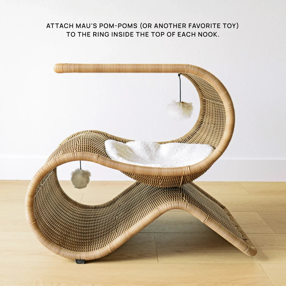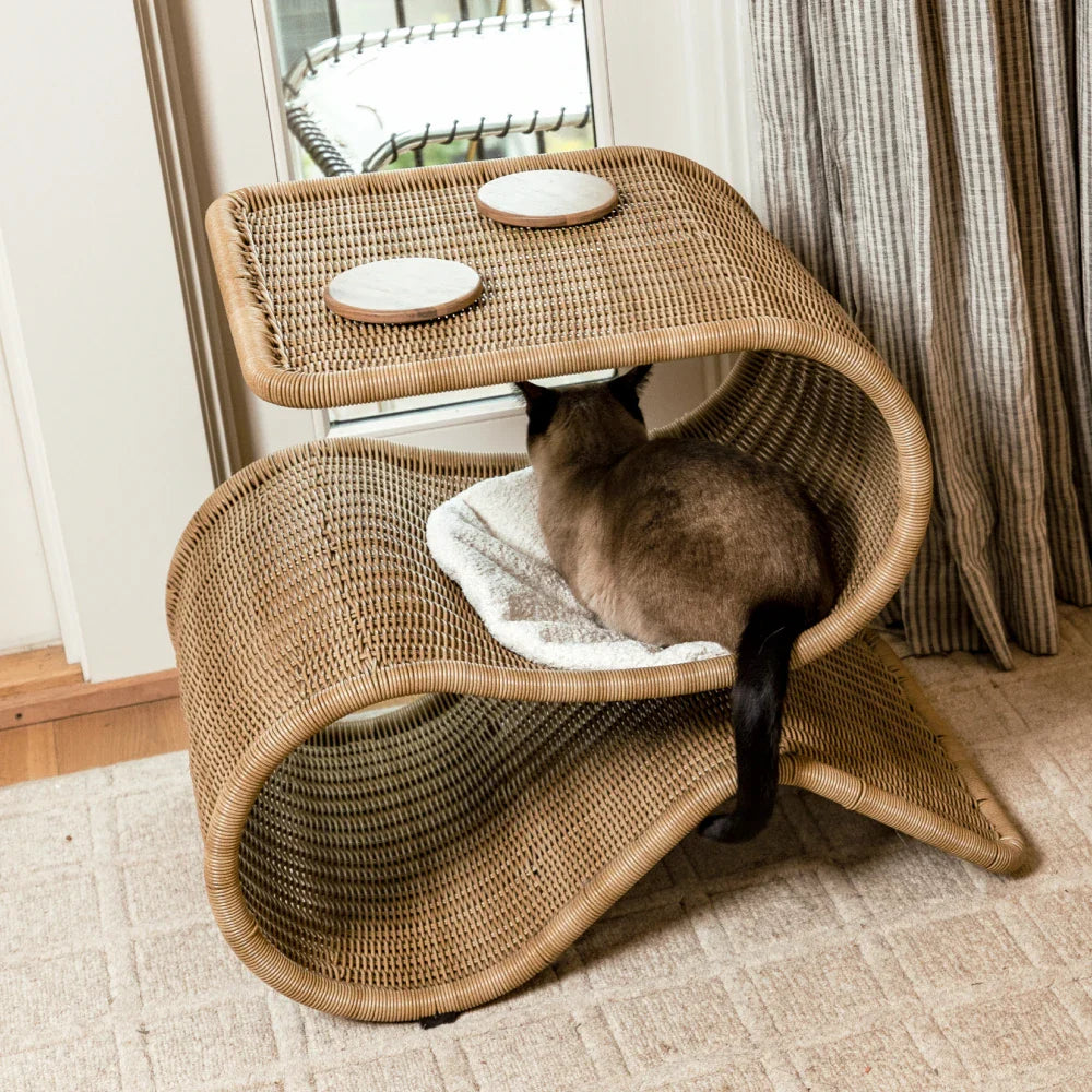 With its open-air, ergonomic silhouette crafted from intricately woven synthetic rattan, the Snake offers both natural charm and lightweight durability, making it well-suited for smaller living spaces and complementary to both modern and classic interiors. Whether next to your sofa, in a cozy reading corner, or as a statement piece, the Snake seamlessly blends warmth with function—giving your cat their own personal retreat while staying right by your side (because you know they wouldn’t have it any other way).